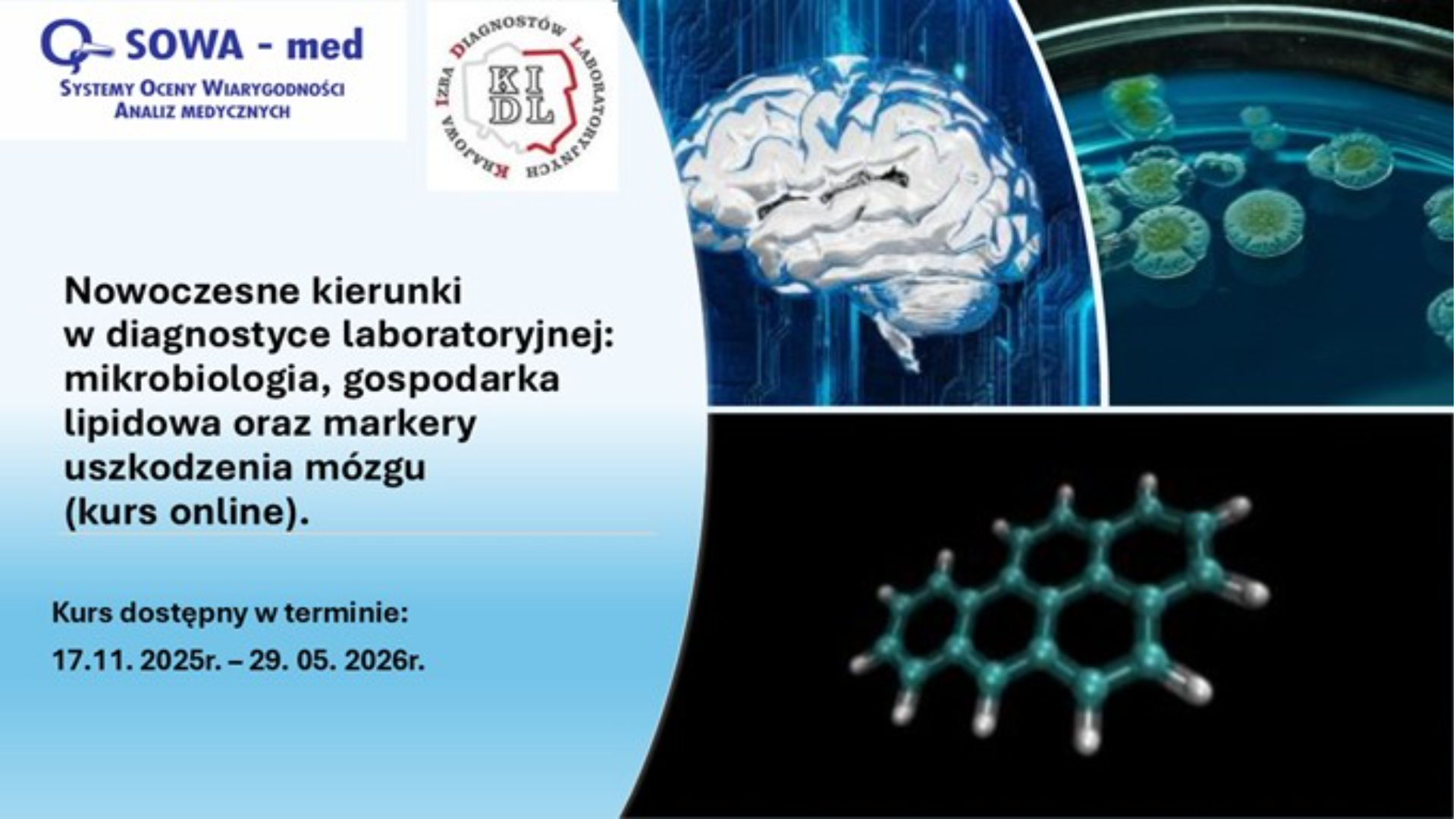 Zapraszamy do udziału w kursie: " Nowoczesne kierunki w diagnostyce laboratoryjnej: mikrobiologia, gospodarka lipidowa oraz markery uszkodzenia mózgu"