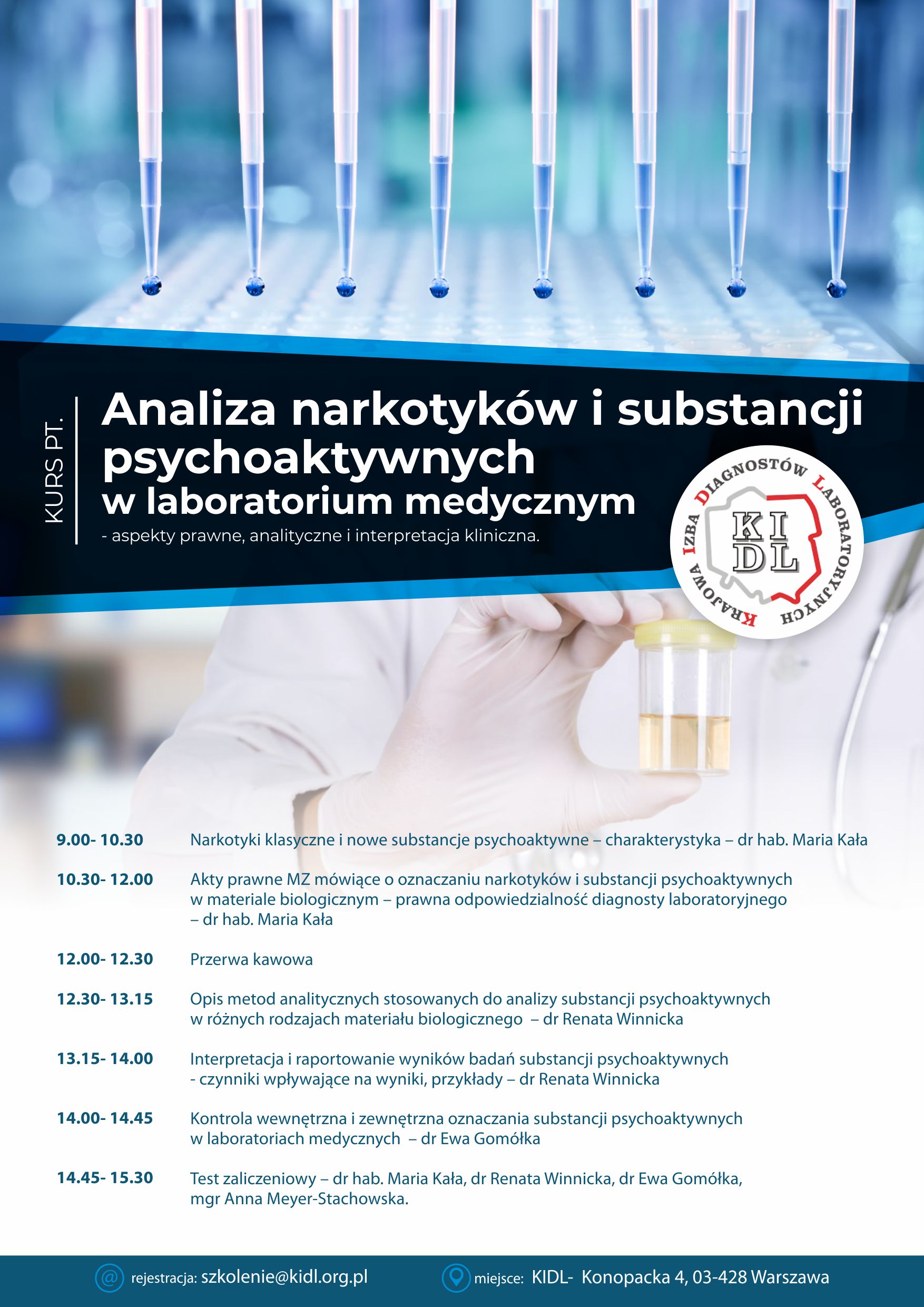 Analiza narkotyków i substancji psychoaktywnych w laboratorium medycznym - aspekty prawne, analityczne i interpretacja kliniczna.